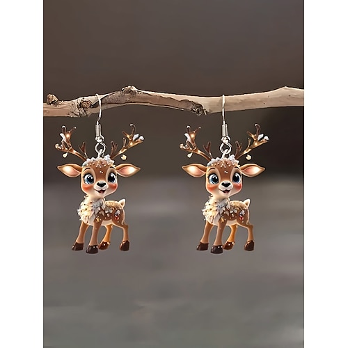orecchini a forma di renna in acrilico da donna, regalo di Natale, grazioso design natalizio con cappello di Babbo Natale, divertente accessorio festivo per feste e riunioni