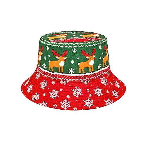 Cappello da pescatore natalizio da donna, in poliestere, con stampa di Babbo Natale e renne, copricapo per feste e celebrazioni invernali