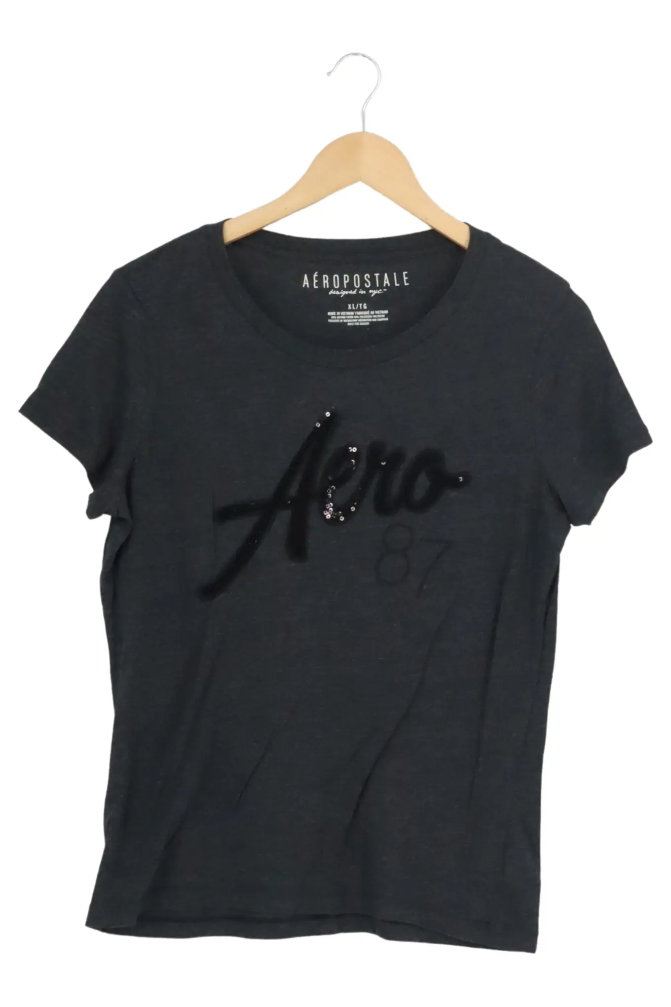 AÉROPOSTALE T-Shirt Damen XL Grau Glitzer Kurzarm Casual