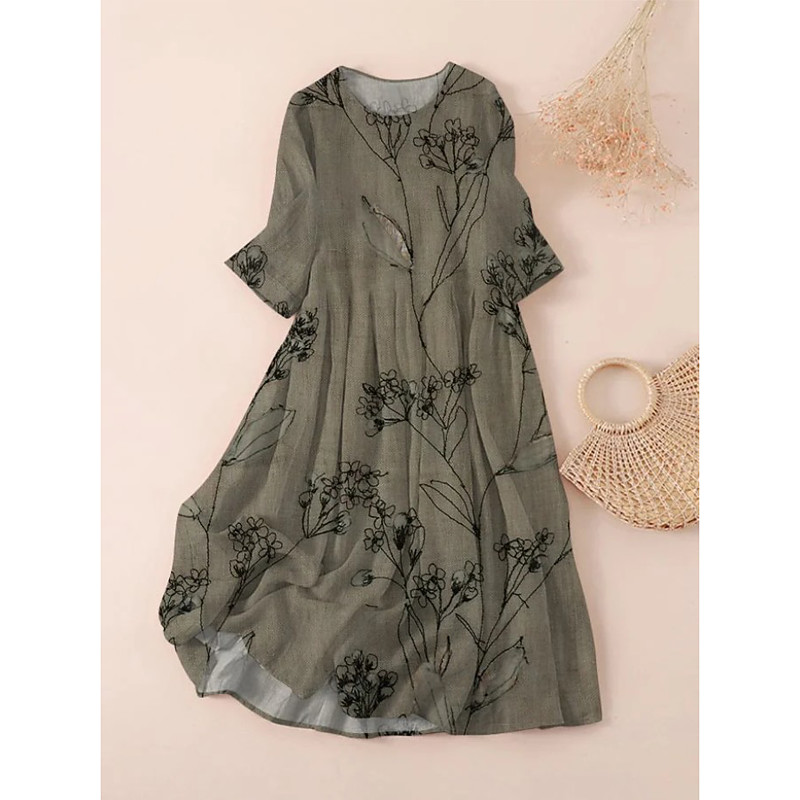 Women's Midi Dress T Shirt Dress Tee Dress A Line Dress Summer Dress Vacation Casual Beach Date Summer Dress Regular Fit Floral Graphic Short Sleeve Crew Neck Dark Brown Black White Light Green