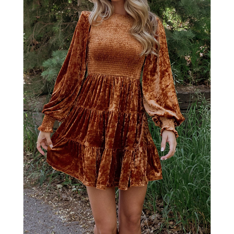 Women's Mini Dress Christmas Dress Velvet Dress Cocktail Dress Peplum Dresses Elegant Fashion Modern Evening Party Party Date Regular Fit Plain Long Sleeve Crew Neck Black Wine Army Green Brown Fall