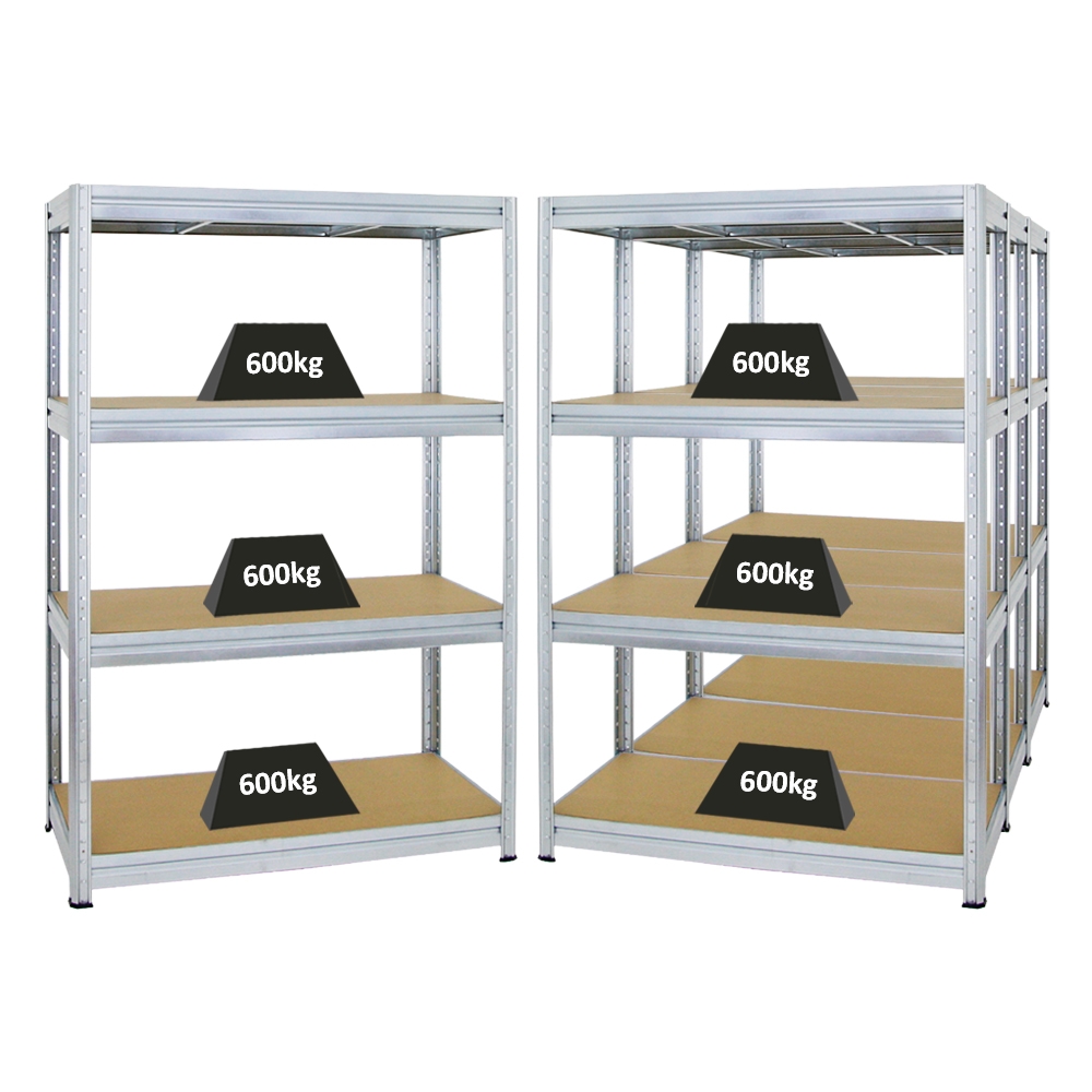 PROREGAL Mega Deal | 4x Schwerlastregal Dino | HxBxT 180x120x60 cm | Fachlast 600kg | Verzinkt | Stecksystem Lagerregal Regalsystem 4 Stk.