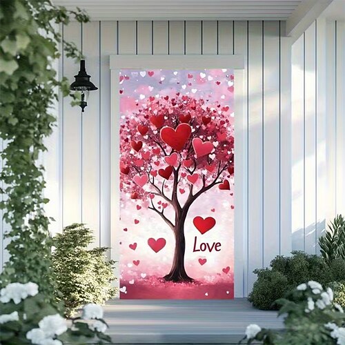 San Valentino Poster Copertura della porta Banner per esterni Amore Cuori Carino Romantico Moderno Da serata Dormitorio Sfondi di ripresa Porta d'ingresso Decorazione per proposta di matrimonio