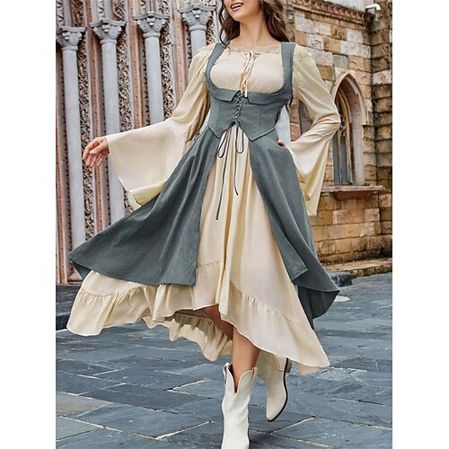 Mittelalterlich Renaissance Cocktailkleid Cosplay Kostüm Abschlussballkleider Wikinger Outlander Kostüm Damen Keltisch Seeräuber Fantasie Maskerade LARP Renaissance-Messe Festival Erwachsene Kleid
