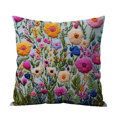 Fodera per cuscino floreale, federa decorativa con stampa piatta 2D e ricamo finto, tessuto in poliestere morbido per divano, camera da letto, soggiorno, arredamento per la casa