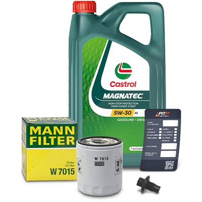 Mann-filter Ölfilter+Schraube+5L Castrol Magnatec 5W-30 A5 [Hersteller-Nr. 10492611] für Volvo, Ford
