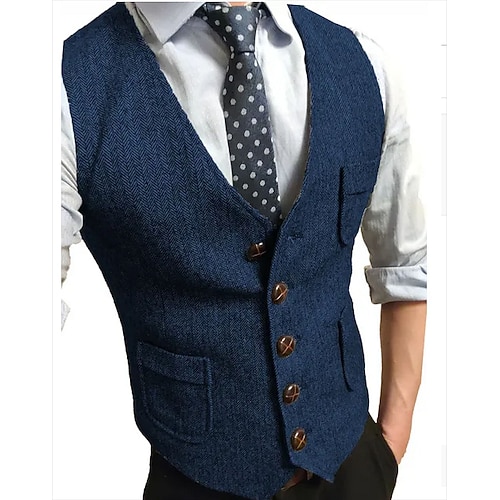 Per uomo Gilet in tweed Gilet Formale Matrimonio Vacanza Quotidiano Vintage Moda Primavera Autunno Tasca Bottoni Poliestere Confortevole Spina di Pesce Monopetto Scollo a V Bavero Vestibilità regolare