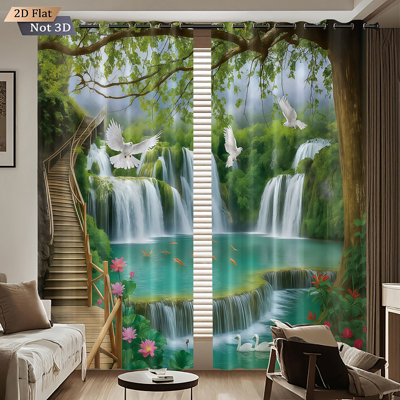 3D Digital Printing Perforated Blackout Curtains Landscape Insulation Outdoor Balcony Resting Room Home Decoration 2 Piece Set
