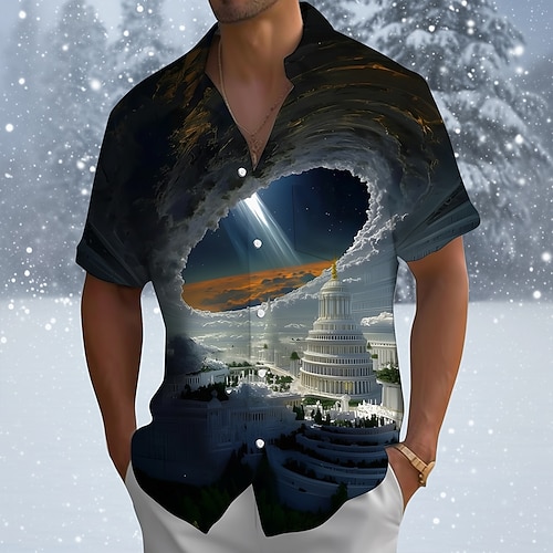 Per uomo Illusione ottica Portale del cielo Tempio della fantasia Camicia Camicia con Bottoni Manica Corta Moda Casual All'aperto Casual Quotidiano Estate Primavera Collo ripiegato Stampa 3D camicie