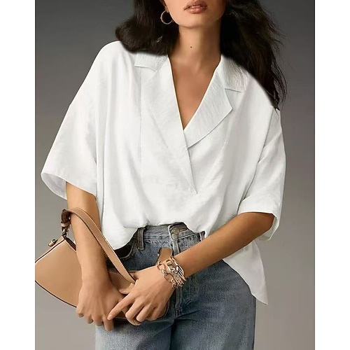 Per donna Camicia Blusa Semplice Elegante Manica Corta Colletto a Camicia Top Regolari Ferie Uscire Patchwork Nero Bianco Azzurro cielo Verde Rosa Estate Primavera Autunno