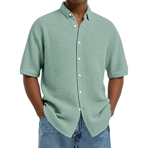 Per uomo Camicia Camicia a nido d'ape Tessuto Camicia casual Camicia con Bottoni Nero Bianco Vino Blu marino Azzurro cielo Manica Corta Semplice Bavero Quotidiano Abbigliamento casual alla moda