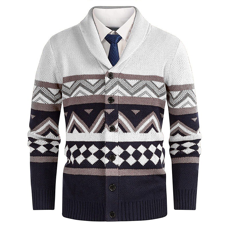 Per uomo Felpa Cardigan Maglione Fair Isle A Coste Maglia Top Regolari Lavorato a maglia Geometrico Collo a scialle Vacanza Moda Casuale Abbigliamento quotidiano Abbigliamento Primavera Autunno