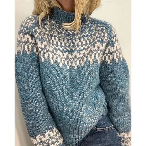 Damen Weihnachtspullover Fair Isle Pullover Pullover Vintage Mode Streetwear Geometrisch Rollkragen Gestrickt Druck Langarm Normale Oberteile Stricken Täglich Ferien Ausgehen Blau Orange Herbst Winter
