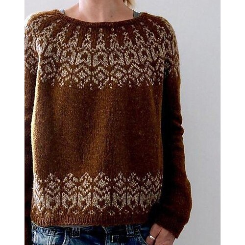 Damen Weihnachtspullover Fair Isle Pullover Pullover Streetwear Lässig Geometrisch Rundhalsausschnitt Gestrickt Druck Langarm Normale Oberteile Stricken Täglich Ferien Ausgehen Rote Braun Herbst