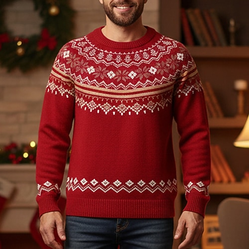 Herren Weihnachtspullover Pullover Fair Isle Sweater Strickpullover Gemusterter Pullover Gerippt Stricken Normale Oberteile Gestrickt Geometrisch Rundhalsausschnitt Mode Basic Weihnachten Urlaub