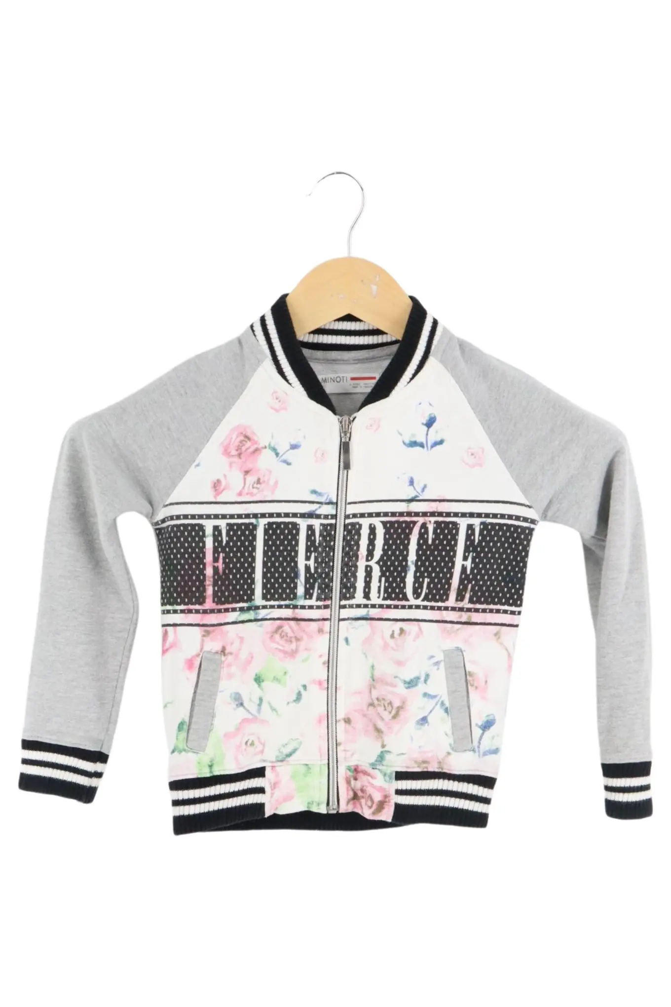 MINOTI Sweatjacke Kinder Gr. 104 Grau Blumenmuster Reißverschluss