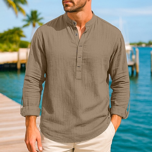 Per uomo Camicia Camicia di lino Camicia popover Camicia Estiva Camicia da Spiaggia Tinta unica Vacanza Casuale Bianco Blu marino Marrone Azzurro Manica Lunga Henley Estate Primavera Abbigliamento