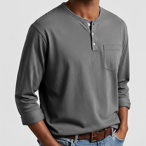 Per uomo Maglia Henley Camicia 100% cotone lavaggio acido Maglietta Manica Lunga Vintage Tinta unita Retrò Vintage Casual Henley Stile Vintage Lavato Henley Casuale Primavera Autunno Tutte le stagioni