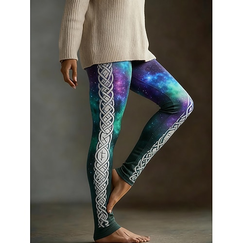 Damen-Leggings im Wikinger-Stil, gemütlich, für Urlaub, Vintage, Ethno-Look, lange Passform, hoher Bund, Galaxien-Print, bequem, dehnbar, für Freizeit, Alltag, Frühling, Herbst, schmale Passform