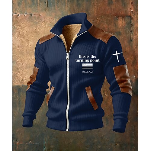 Per uomo Felpa con cappuccio a zip intera Giacca in Pile Felpa con cappuccio in pile Nero Bianco Verde militare Blu marino Marrone Colletto Mao Croce Bandiera Americana Tasca Dettagli in similpelle