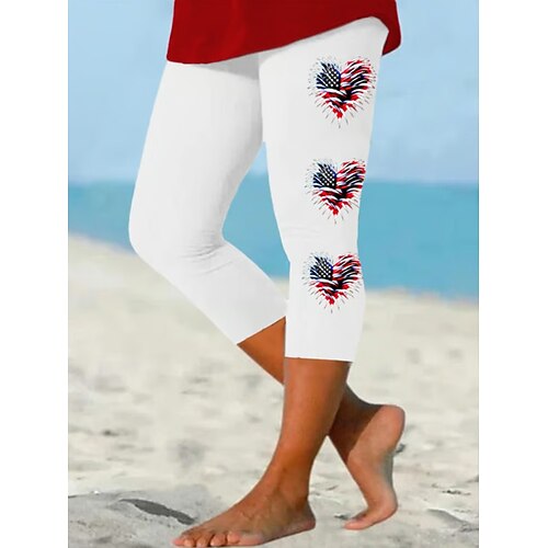 Per donna Pantaloni capri Leggings Vacanza Vintage Moda Lunghezza al polpaccio Misura del girovita medioPantsGiorno dell'indipendenza americana Grafico Bandiera Bandiera Americana Stampa Comodit
