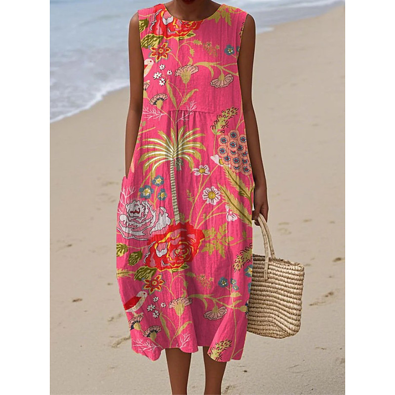 Women's Midi Dress Sundress Shift Dress Vacation Casual Boho Party Beach Floral Graphic Sleeveless Crewneck Black Green Blue White Pink Red Summer Spring