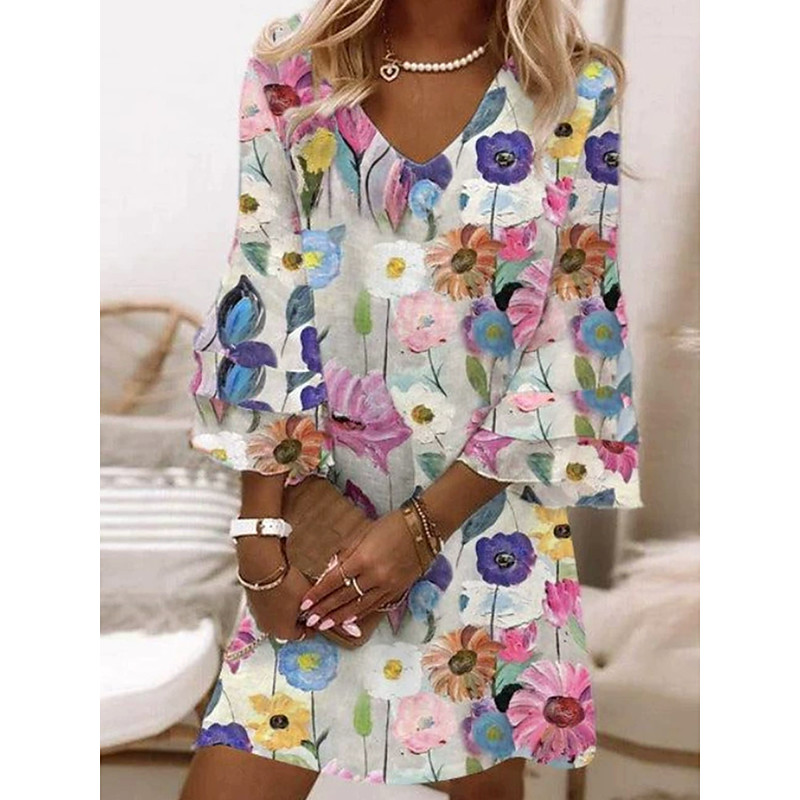 Women's Mini Dress Sundress A Line Dress Bohemia Vacation Casual Party Regular Fit Floral Graphic Abstract 3/4 Length Sleeve V Neck Pink Purple Light Blue Spring Fall