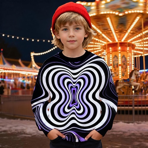 Jungen 3D Grafik Optische Täuschung Gestreift Sweatshirt Langarm Frühling Herbst Mode Basic Kinder 4-12 Jahre Rundhalsausschnitt Outdoor Lässig Täglich Normale Passform
