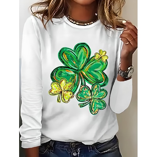 San Patrizio Per donna Maglietta Trifoglio Piante Casual Manica Lunga Girocollo Top Regolari Quotidiano Stampato Nero Bianco Rosa Blu Cachi Estate Primavera