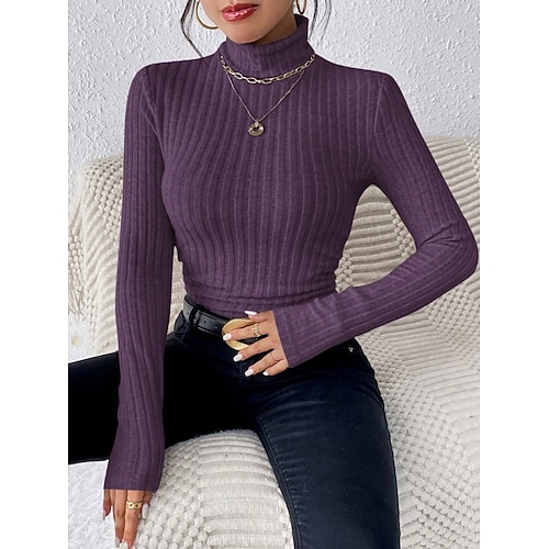 Per donna Blusa Tinta unica Elegante Essenziale Casual Manica Lunga Dolcevita Top lunghi Quotidiano Orlo asimmetrico Nero Vino Blu Reale Viola Primavera Autunno Inverno