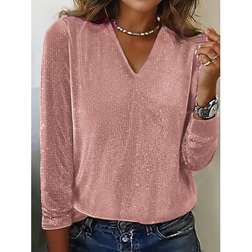 Per donna Camicia Blusa Semplice Essenziale Moderno Manica Lunga Scollo a V Top Regolari Quotidiano Ferie Paillettes Argento Nero Giallo Rosa Rosso Estate