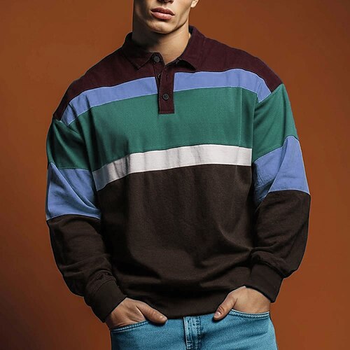 Herren Streifen Rugby-Poloshirt Langarm Polo-Shirts Hemden mit Kragen Lässig Outdoor Athleisure 3D-Druck Frühling Herbst Blau Rote