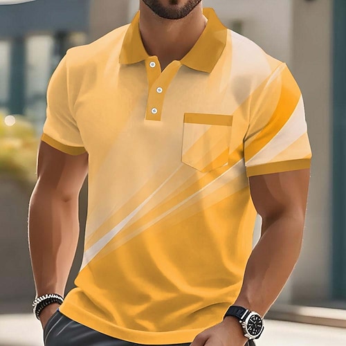 Herren Gestreift Sport-Poloshirts Golfshirt Kurzarm Polo-Shirts Hemden mit Kragen Lässig Sportbekleidung Urlaubskleidung Knöpfe 3D-Druck Gelb Rote Königsblau