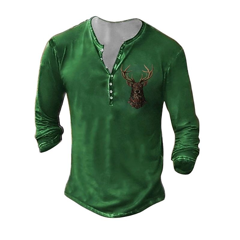 Men's Henley Shirt Tee Tee Top Long Sleeve Shirt Long Sleeve Henley Summer Fall Pattern Deer Fashion Designer Fashion Vintage Vacation Street Going out Dark Grey Black White Top Tee for Men