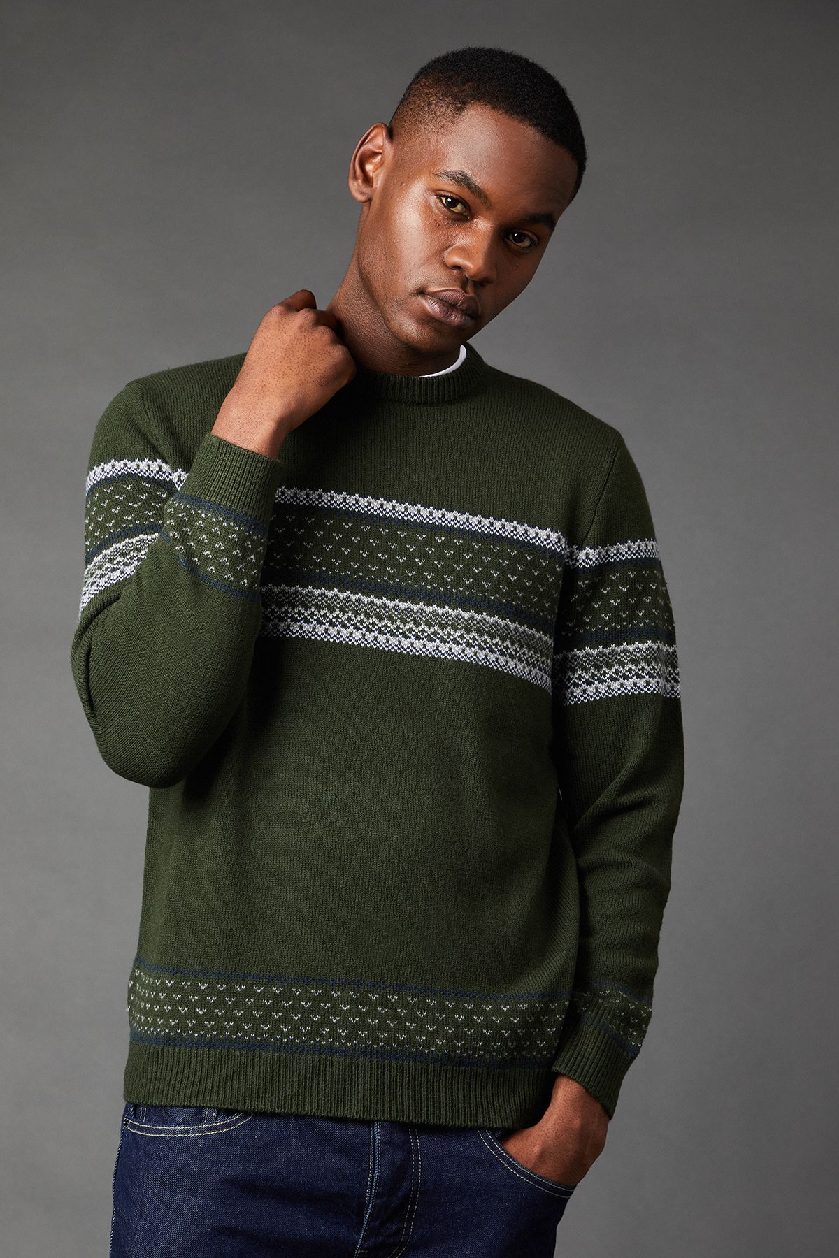 Burton Mens Placement Stripe Pattern Crew Neck Jumper - Dark Green - Size Large | Burton Sale | Discount Designer Brands