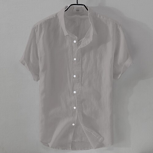 Per uomo Camicia Camicia di lino Camicia casual Camicia con Bottoni Camicia di cotone Semplice Vacanza Streetwear Nero Bianco Rosa Rosso Manica Corta Collo ripiegato Estate Abbigliamento