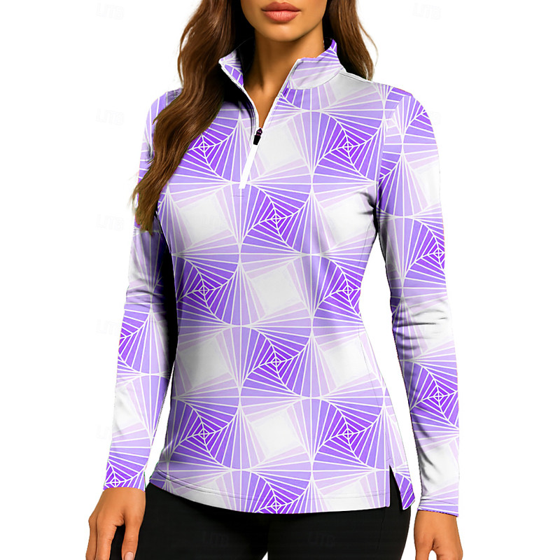 Women's Gradient Tops Golf Polo Shirt Tennis Shirt Long Sleeve Print Quarter Zip Pullover UV Protection Elastic Breathable Tennis Golf Pickleball Stand Collar Zip Collar Shirt Polo Black Yellow Pink