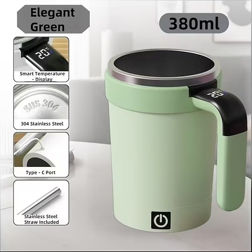 Tazza da caffè magnetica con coperchio a cannuccia, frullatore in acciaio inox 304, miscelazione rapida a 7000 giri/min per frullati caffè, ricaricabile tramite USB per casa/ufficio/viaggio (bevande