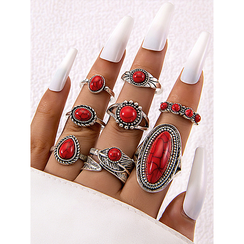 Women's Vintage Opal Ring Set, Bohemian Silver-Plated Adjustable Rings Jewelry for Parties, Weddings and Daily Wear