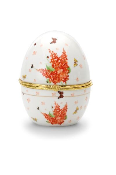 Porzellan-Ei roter Flieder H 12,0 cm D 10,0 cm Porzellan / vergoldet