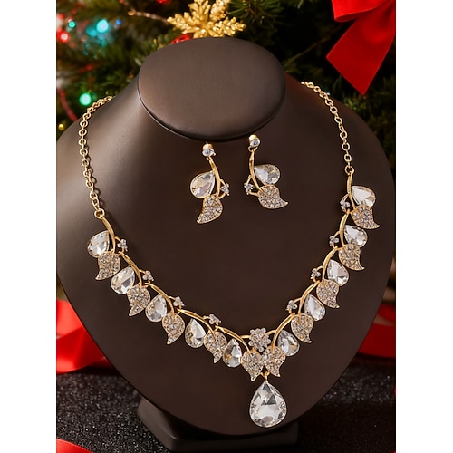 Damen-Set mit roter Kristallkette und Ohrringen, 2-teilig, eleganter vergoldeter Schmuck für Weihnachtsfeiern, Weihnachtsgeschenke Abendoutfits