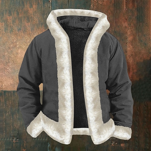 Herren-Fleece-Hoodie, roter Pullover, Color-Blocking-Patchwork, klassisches Vintage-Sweatshirt für den Alltag, perfekt für Urlaub und Winter