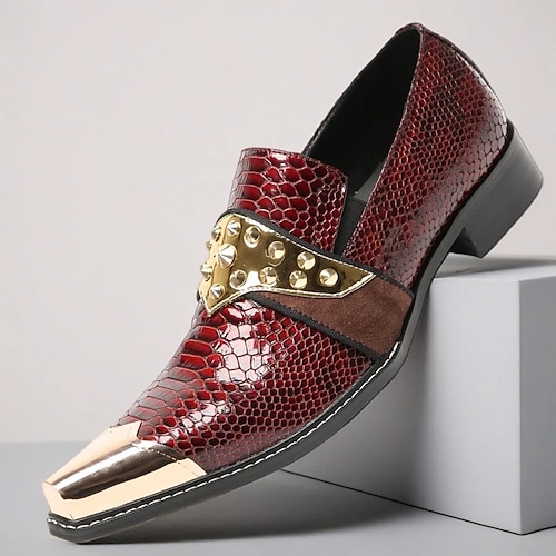 scarpe slip-on da uomo in pelle di serpente rossa con dettagli dorati: calzature formali di lusso per uomini eleganti, perfette per eventi serali e occasioni alla moda