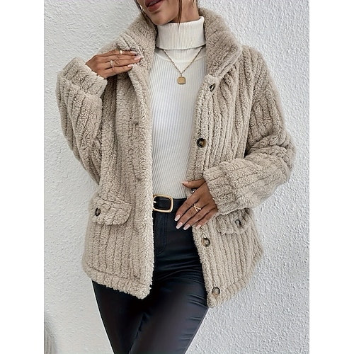 Per donna Cappotto Invernale Giacca Sherpa Confortevole Traspirante Tasca Bottoni Casual Semplice Vacanza Streetwear Casuale Abbigliamento quotidiano Monopetto Regolare Collo ripiegato Vestibilit