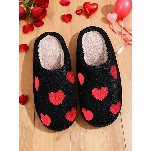 pantofole da casa da donna in pile sherpa bianco con cuori rosa – morbide e calde pantofole da casa per la camera da letto, San Valentino e il relax