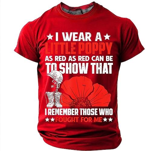 Gedenktag, Remembrance Day – Ich trage ein bisschen Mohnblume, so rot wie rot nur sein kann – Herren-T-Shirt mit rotem Mohnblumen-Motiv, patriotischem Aufdruck, Kurzarm, Rundhalsausschnitt,