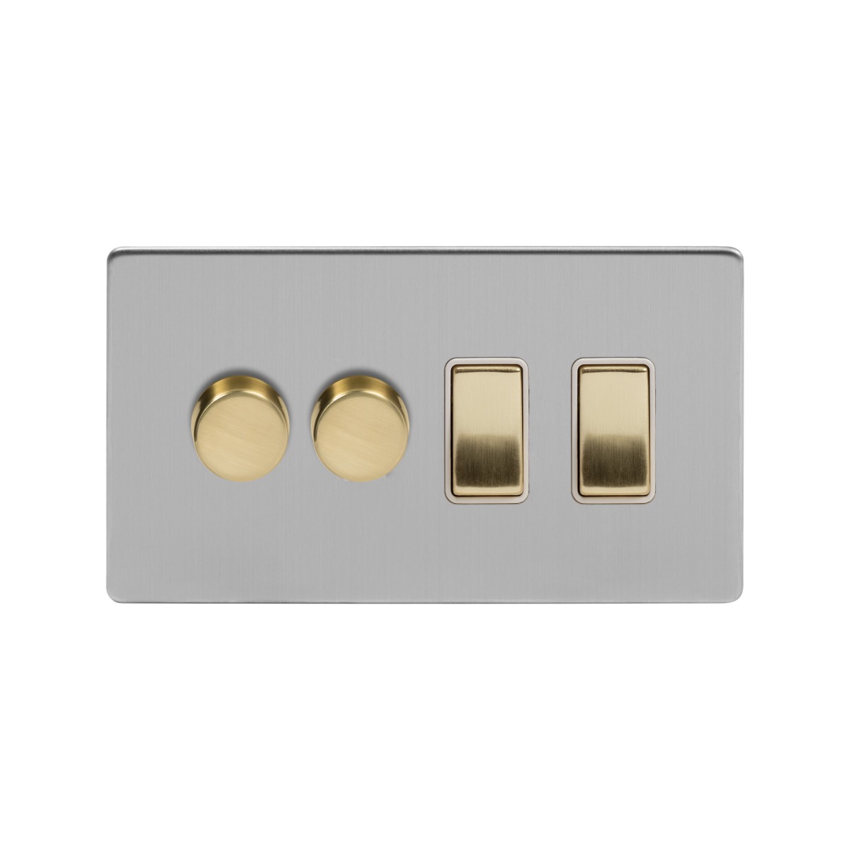 Soho Lighting Brushed Chrome & Brushed Brass 4 Gang Switch with 2 Dimmers (2x150W LED Dimmer 2x20A Switch)