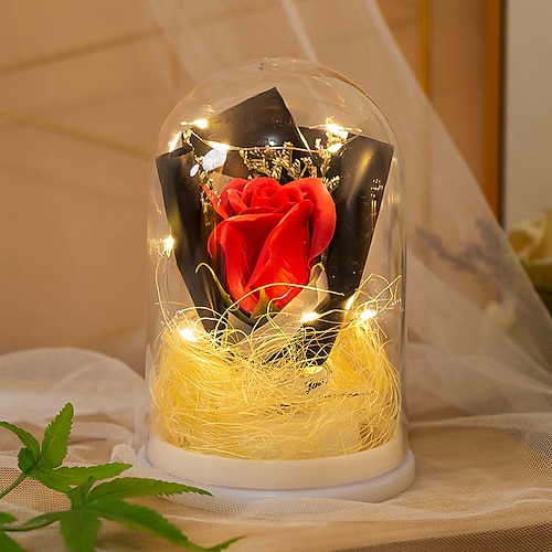 1 Stück 15 10 cm Weihnachten Halloween Valentinstag Muttertag leuchtende ewige Blume transparente Abdeckung simulierte Rose LED-Nachtlicht Schreibtisch dekoratives Licht Pendelleuchte AAA-Batterie