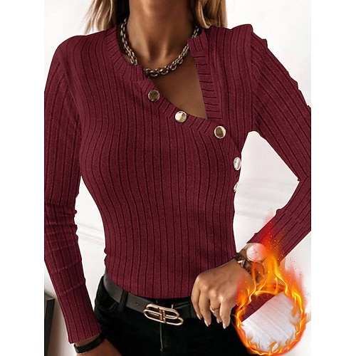 Per donna Camicia Tinta unica Essenziale Informale Manica lunga A V Top regolari Giornaliero Collage Bottoni Nero Rosso Grigio Autunno Inverno