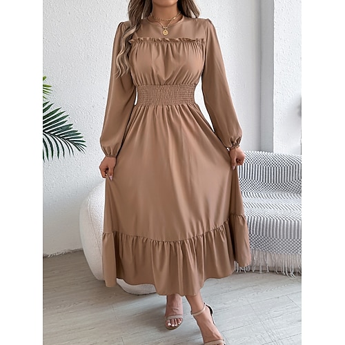 Per donna Abito Midi Abito a trapezio Casual Quotidiano Vestibilità regolare Semplice Manica Lunga Girocollo Blu blu navy Vino Marrone Estate Primavera Autunno